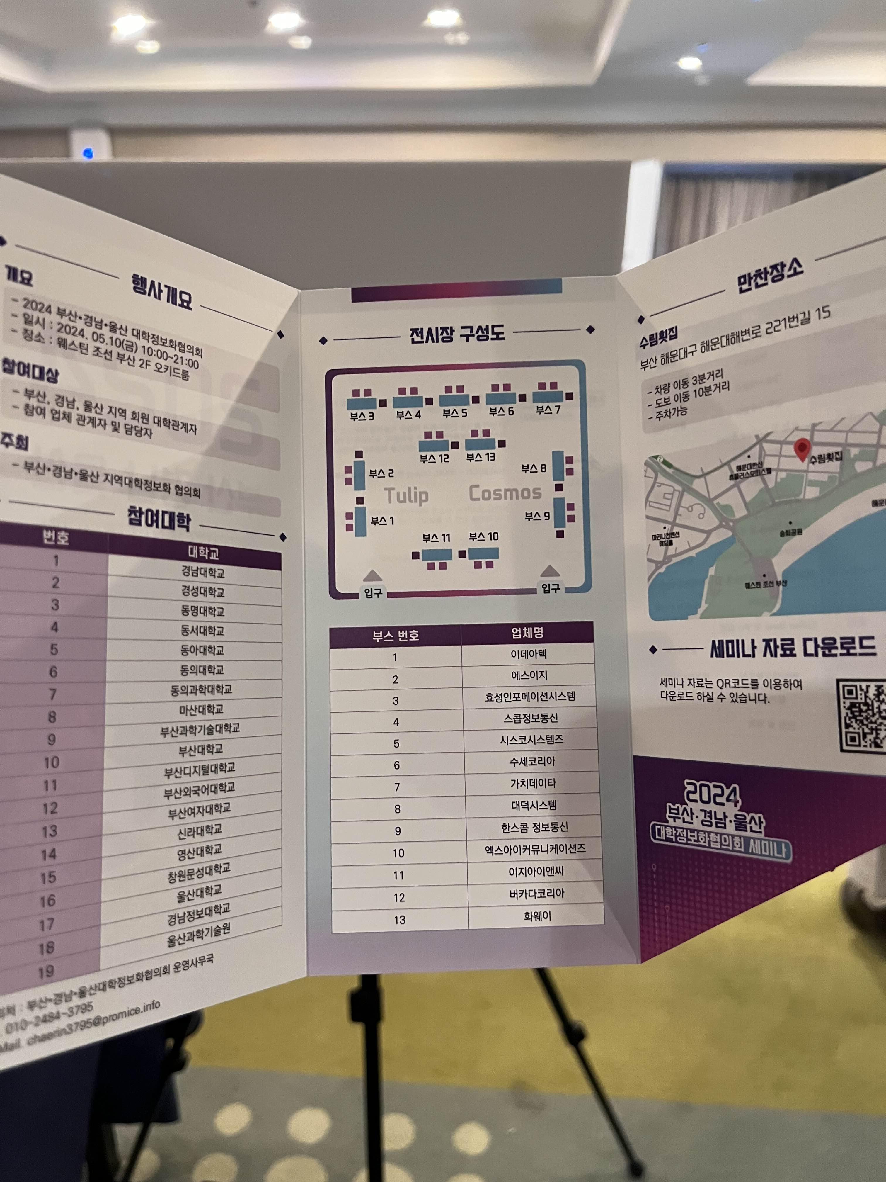 당사에서는 2024.05.10 웨스턴 조선 부산 2F 오키드룸에서 부울경 지역 회원 대학관계자와 참여 업체 관계자 및 담당자 대상으로하는 세미나에 참여하였습니다.
