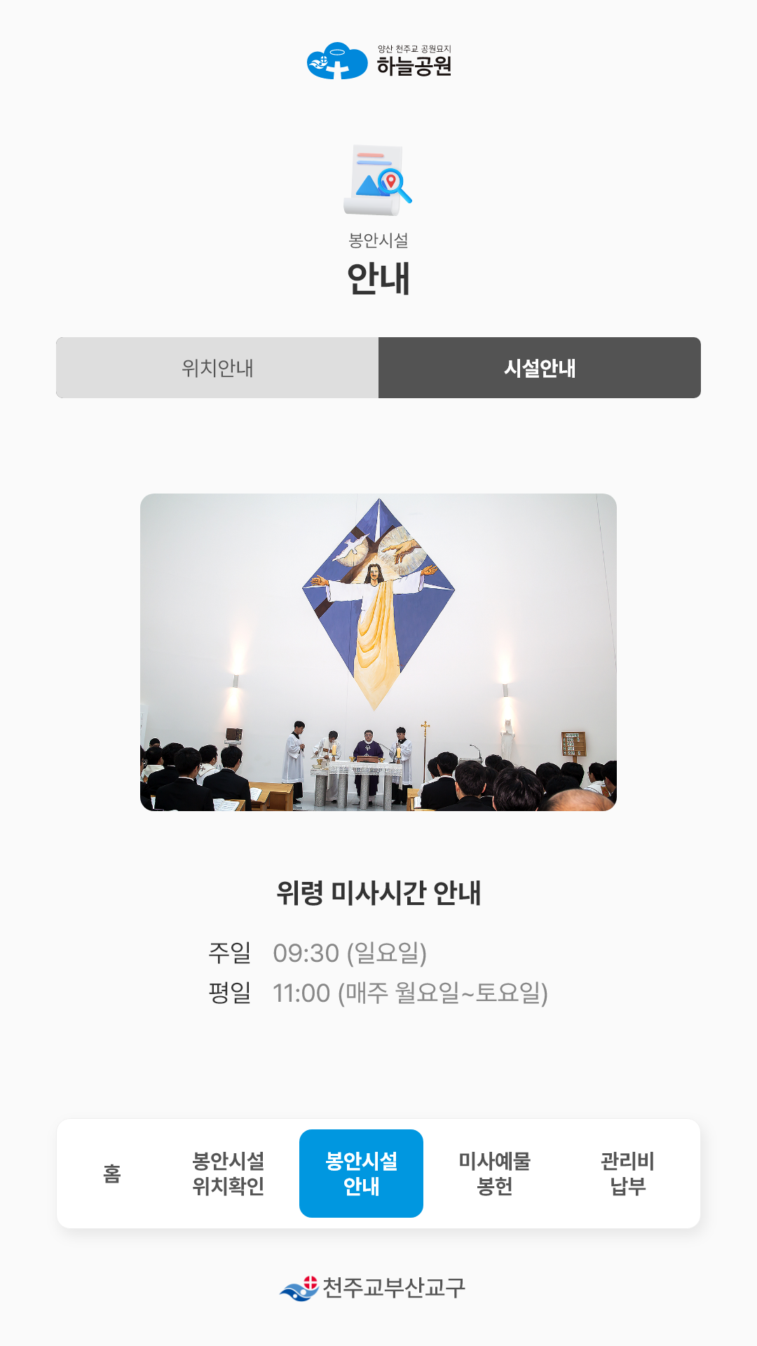천주교 부산교구 양산 하늘공원의 시설안내, 봉안당/봉안묘/매장묘 등의 묘지 위치 확인